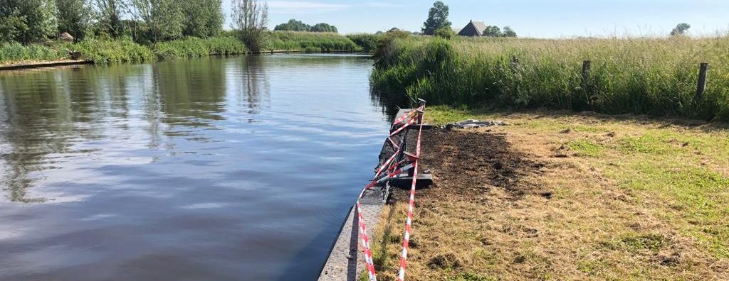 In de nacht van 14 op 15 juni jl. is een boot uitgebrand aan onze damwand LM02 bij Dokkum in het Dokkumer Grutdjip. Gelukkig was er niemand aan boord.