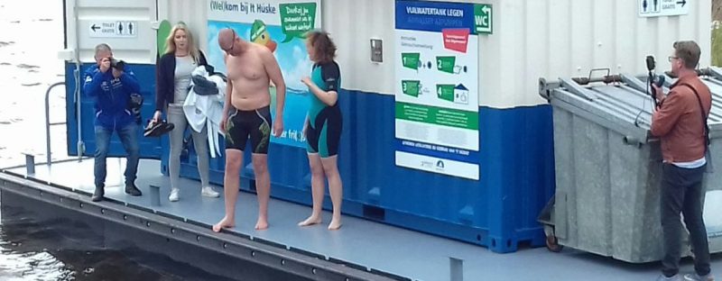 Vrijdag 17 mei hebben zwemkampioen Maarten van der Weijden en Gedeputeerde Sietske Poepjes samen met leerlingen van de Mienskipsskoalle De Legeaën uit Gau/Sibrandabuorren het zwemseizoen geopend. Dat deden ze door vanaf It Húske te water te gaan en een stuk te zwemmen. It Húske was voor de gelegenheid afgemeerd bij recreatiegebied De Potten in Offingawier. Samen zwemmen in schoon water! Het is belangrijk dat het Friese zwemwater schoon is en blijft. Provincie Fryslân en Wetterskip Fryslân zetten zich hiervoor in. Marrekrite helpt hieraan mee met It Húske, een drijvend vuilwaterstation mét toilet voor de watersport. De Húskes zijn zeer innovatieve, drijvende zuiveringsinstallaties. De drie Húskes zijn compleet autonoom en zelfvoorzienend. Het vuilwater wordt via biologische processen en microfiltrage zodanig gereinigd, dat we – met toestemming van Wetterskip Fryslân – het gereinigde water aan de achterkant van de Húskes direct op het oppervlaktewater mogen lozen. U kunt als watersporter meehelpen aan het…